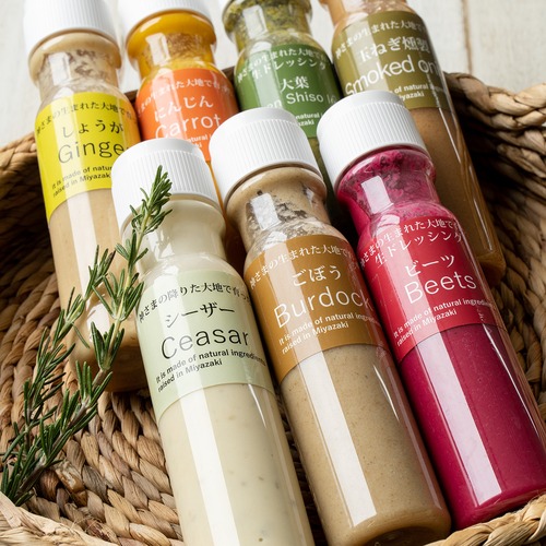 野菜はすべて宮崎の野菜を使用。余計な化学調味料や保存料は使わずに野菜の天然の色や味わいを生かしたハンドメイド生ドレッシング。